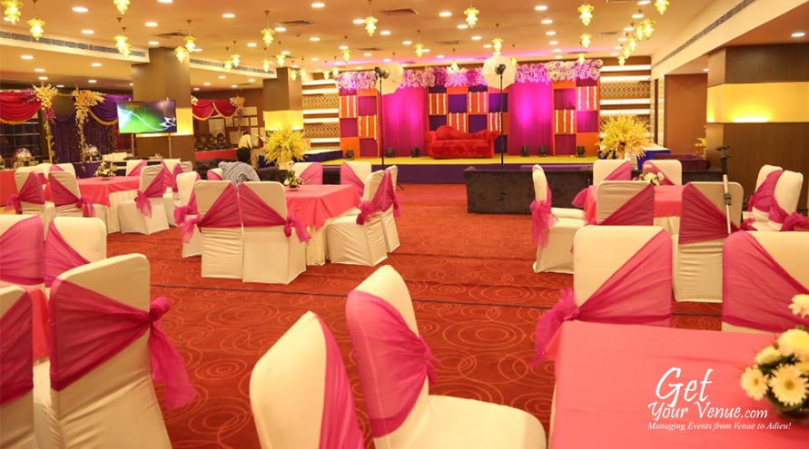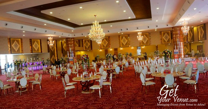 Stylish interiors, stunningly beautiful lighting effects and comfortable seating arrangements make this banquet hall perfect for a glittery wedding affair.