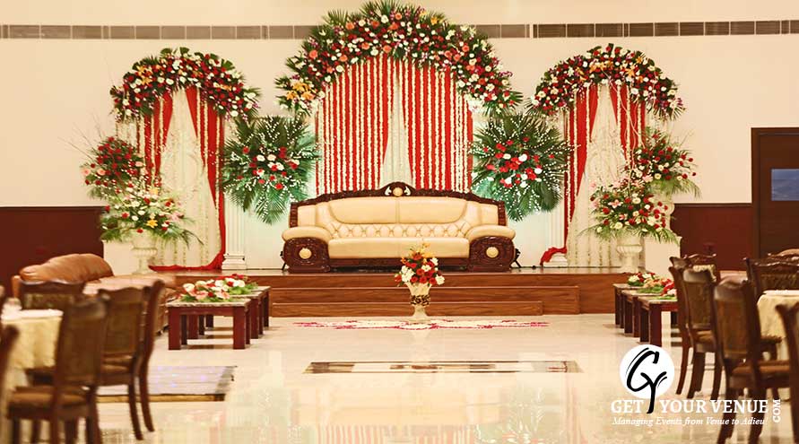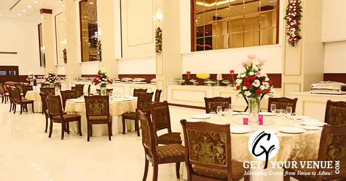 Stylish interiors, stunningly beautiful lighting effects and comfortable seating arrangements make this banquet hall perfect for a glittery wedding affair.