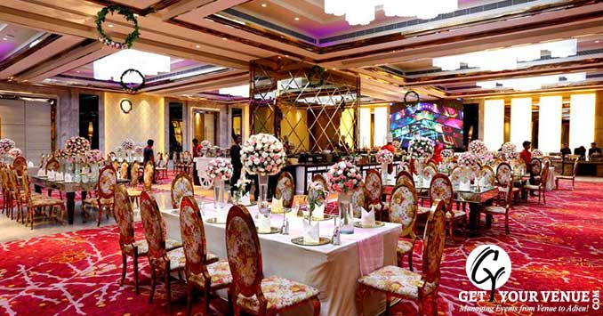Royal Ballroom can accommodate 1000 guests and is a perfect destination for a grand party. Decoration is also available in-house at the rate INR 50000. The staff is very helpful. Alcohol is served. Live music and DJ is also allowed. It is a great wedding venue Noida for reception.