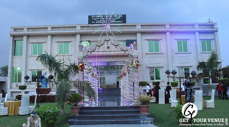 Sunder Farm House is located in Sector 73 in Noida. It is centrally located and is one of the best destinations for hosting events like weddings and receptions. The venue offers flexible time slots for the events and the hosts can select the morning or evening time as per their requirement. A breezy lawn and a grand hall are used for hosting the parties. The decoration of the wedding venue in Noida is a great option for the people.