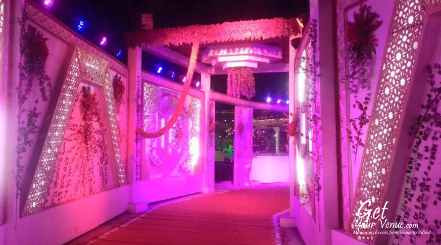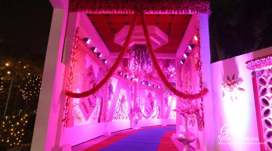 Lawn – A beautiful, spacious and viridescent garden, this banquet area provides you with 360° awe-inspiring views via lush green landscapes, cool air, and natural lighting. This wedding lawn in North Delhi has an area of 37,000 sq ft where you can invite 70 to 1,200 guests to rejuvenate and celebrate your wedding in a romantic, natural setting.