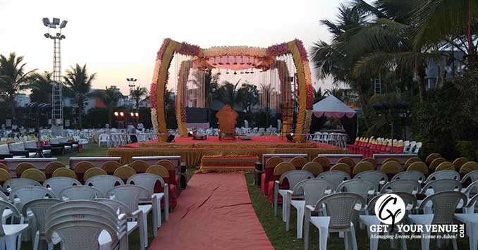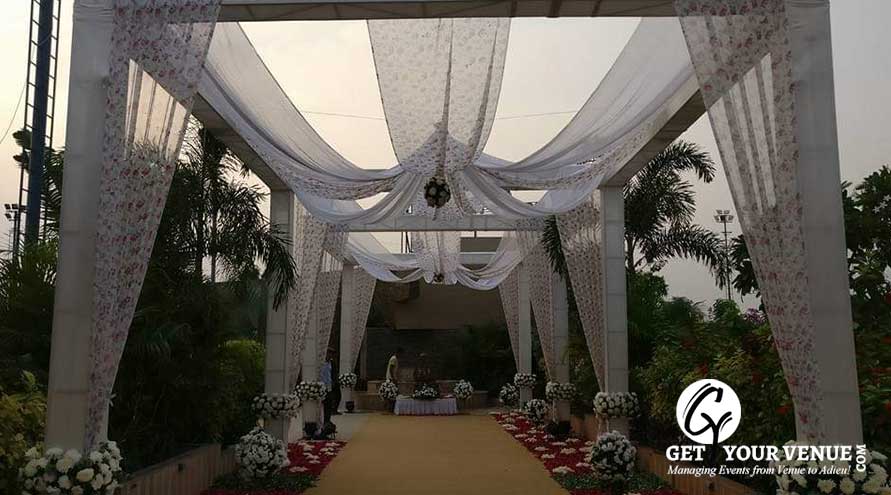 Lawn+hall - this place is equipped with an astounding capacity of up to 1200 people making it well suited for extravagant weddings, parties, and events.
