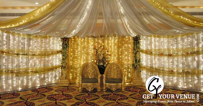 Stylish interiors, stunningly beautiful lighting effects and comfortable seating arrangements make this banquet hall perfect for a glittery wedding affair.