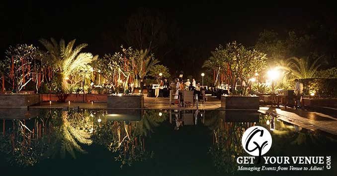 The vast expanse of verdant lawns adds subtle charm to your wedding venue. It ensures your esteemed guests having enough room to meet and greet without bumping into each other. Lovely lighting effect and floral décor make the space more elegant.