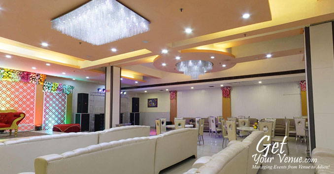 Stylish interiors, stunningly beautiful lighting effects and comfortable seating arrangements make this banquet hall perfect for a glittery wedding affair.