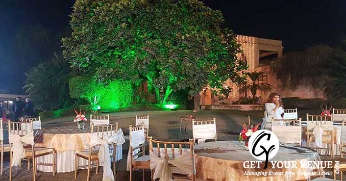 The vast expanse of verdant lawns adds subtle charm to your wedding venue. It ensures your esteemed guests having enough room to meet and greet without bumping into each other. Lovely lighting effect and floral décor make the space more elegant.
