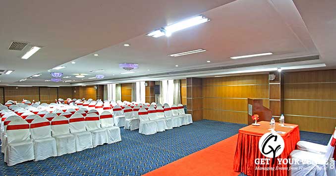 PRESIDENT HALL - The hotel has the availability of halls which can accommodate 275 people and one of them is President Hall. This hall comes with high-speed Wi-Fi connectivity with best staff services of the hotel. It covers an area of 2380 sqft.