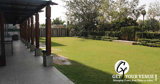 The vast expanse of verdant lawns adds subtle charm to your wedding venue. It ensures your esteemed guests having enough room to meet and greet without bumping into each other. Lovely lighting effect and floral décor make the space more elegant.