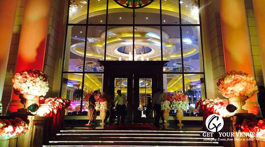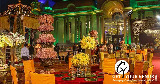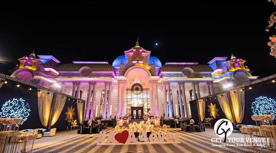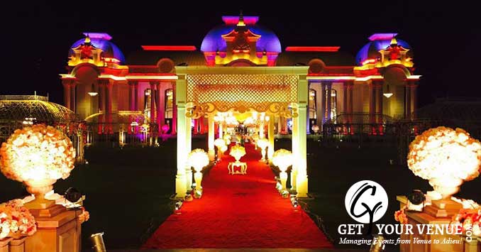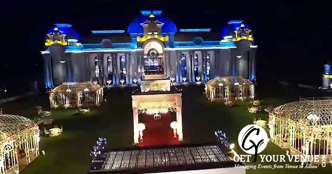 The vast expanse of lush green lawns adds subtle charm to your wedding venue. It ensures your guests having enough room to meet and greet without bumping into each other. Lovely lighting effect and floral décor make the space more elegant.