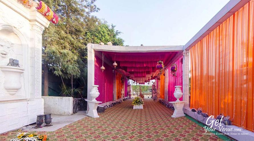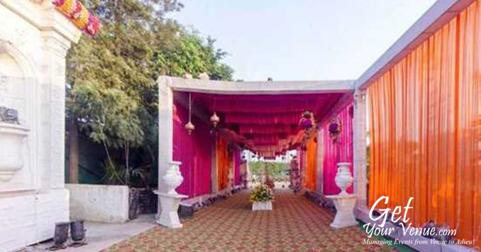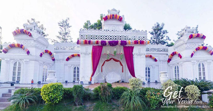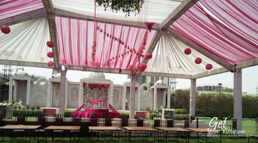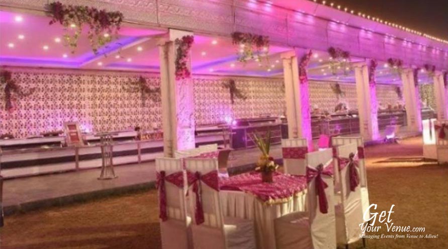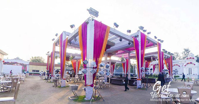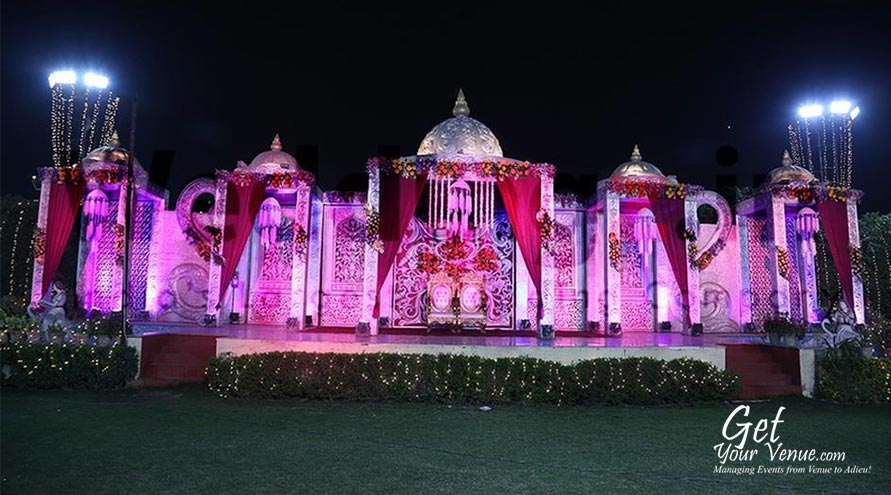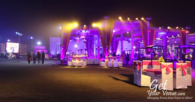 The vast expanse of verdant lawns adds subtle charm to your wedding venue. It ensures your esteemed guests having enough room to meet and greet without bumping into each other. Lovely lighting effect and floral décor make the space more elegant.