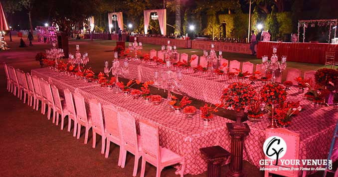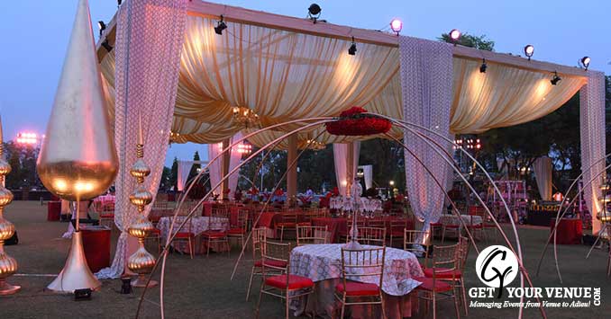 Lawn: With the space area of 38,000 sq. ft, this lawn provides you with the opportunity to organize an event for 500 guests. Offering exotic ambiance and serenity, this venue offers it all add fun to all your events.