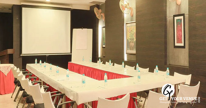 Banquet- This fully air-conditioned banquet hall will accommodate 125 guests in the space area of 1550 sq. ft.