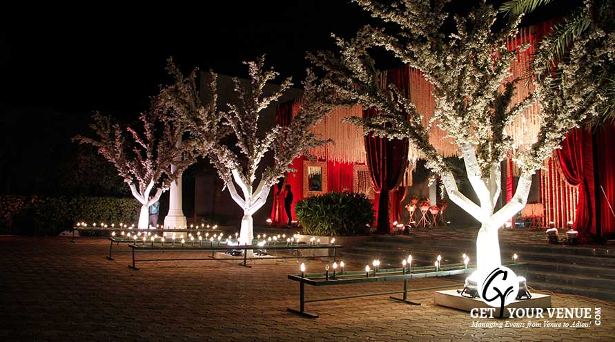 Lawn & Pandal – This mammoth of a garden has an area of 84,000 sq ft and can accommodate 1200 to 2000 guests. A delightful locale, here you can celebrate any occasion to your heart’s content. Trouncing all other wedding areas in South Delhi in banquet space, it comes with a large Pandal and is perfect for any larger-than-life extravaganza one might wish to host.