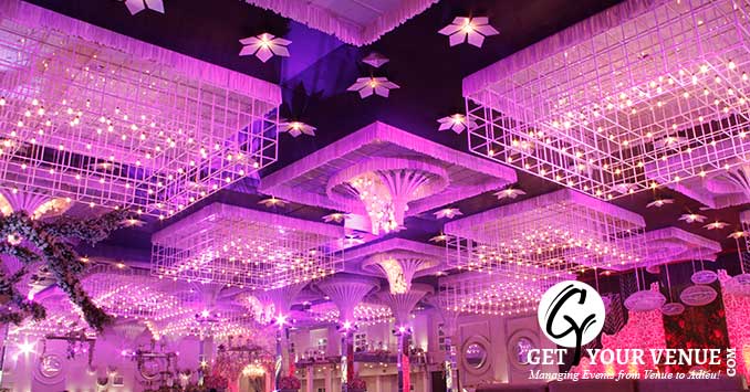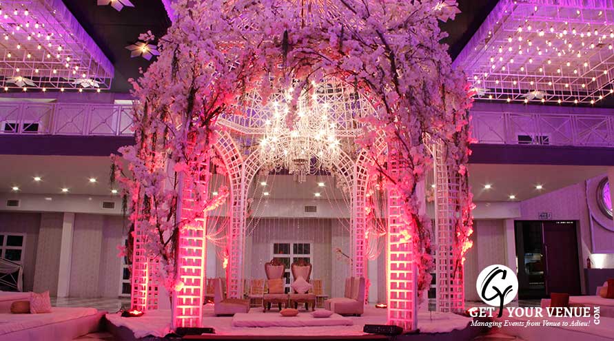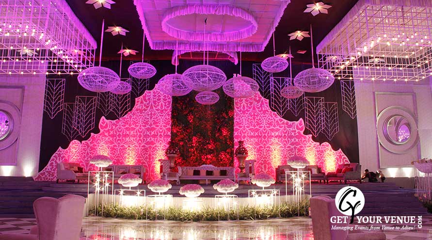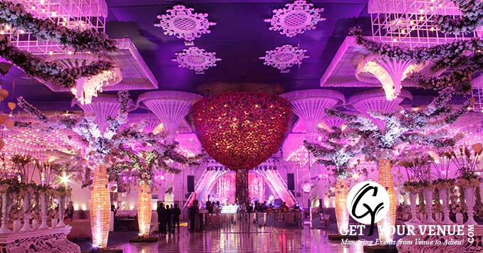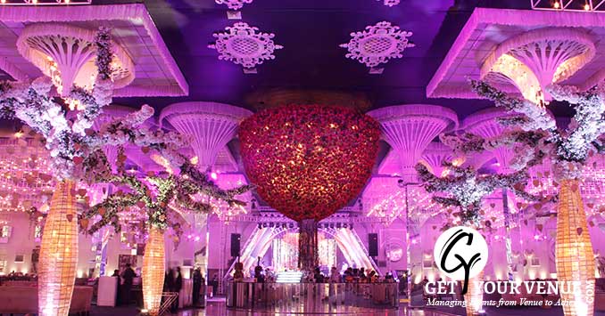 Situated at The Ambience Island, Gurgaon, The Ritz by FNP Gardens is a premium property on the NH8 belt, that’s perfect for signature weddings. One of the biggest wedding venues in South Delhi, its spread over a vast 50,000 sq ft area and comprises of a large hall and an enormous parking space. Its French renaissance inspired decor blends with the gothic architecture and a neutral color scheme and together makes for a spectacular sight. With lustrous chandeliers, rich tapestry, tall pillars, elegant decor and a proportionate structure, the place exudes grandeur and magnificence. The venue is a short trip from Gurgaon, Dwarka, and South Delhi. Moreover, being close to the Delhi airport it offers convenience to non-Delhiite guests.