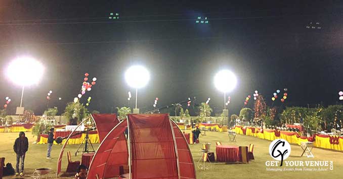 Lawn 2: With the sprawling space of 5,068 sq. ft, this marriage lawn in Indore can accommodate up to 400 guests at once.