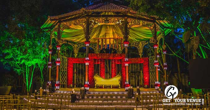 Escape to the past, to an amphitheater under the stars, The Tamarind Tree is a place where the old, the new, and someplace magical are crafted into an exquisite tapestry. Nestled in a five acre garden of beautiful trees including the original tamarind tree after which it was named, a natural pond, colonial Bandstand, elegant pavilions, and ample open spaces, The Tamarind Tree is a perfect wedding destination in Bangalore. From green aisles to granite alters, fluid open spaces, lush green lawns, two large kitchen spaces with a very special Sheesh Mahal bar and ample food counter space, it can comfortably accommodate up to 1000 guests. They also have a grand villa and two suites that can accommodate up to 30 guests. The Tamarind Tree, endeavor to give their guests a seamless experience. Be it reception or any other wedding event, step into marital bliss with a delightful fervour at The Tamarind Tree, one of the spectacular wedding venues in Bangalore. From exquisite catering to mesmerizing entertainers, The Tamarind Tree strives to make each event one that will go down memory lane.