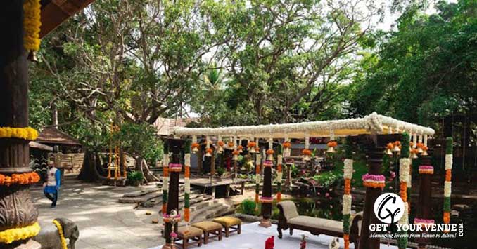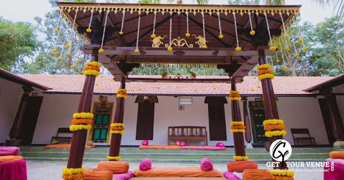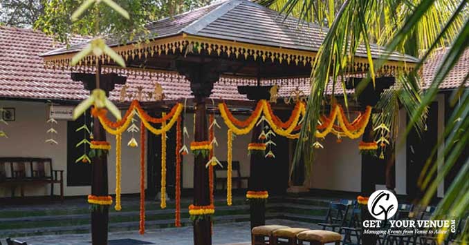 ATHITHISHALA - A space that completely transports you to the times when you played in the courtyards of your ancestral home. With rooms oozing heritage and tradition and an intricately crafted mantap, the four pillars of the mantap represents the four important aspects of human life. This place can accommodate 400 guests easily.
