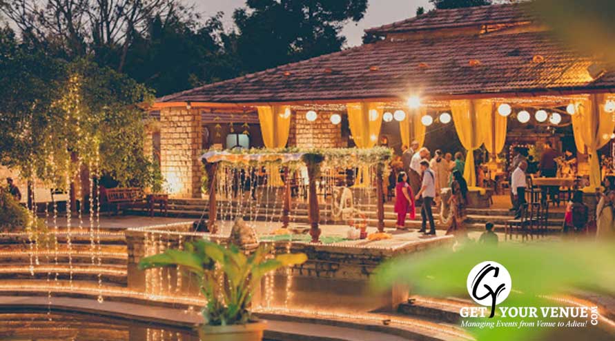 VILLA COURTYARD - Our most loved cozy space for small intimate gatherings. It's a riot of greens , accompanied with exquisite antiques and a serene water body. Perfect for those pre - wedding get-togethers!
