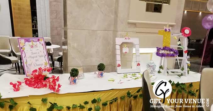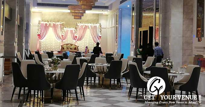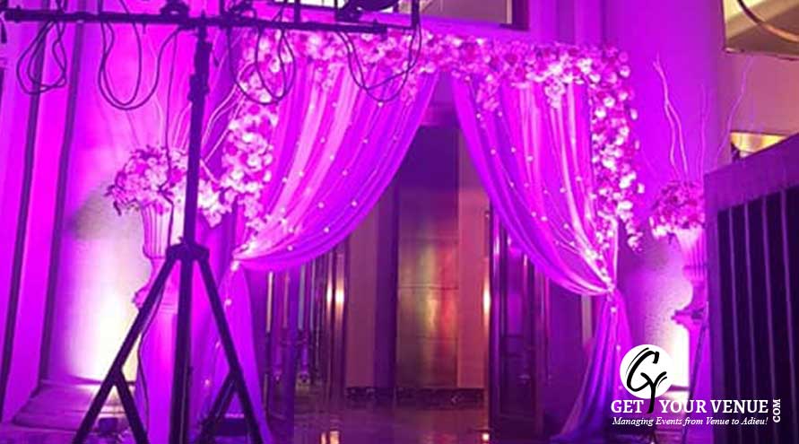 Astoria 1 - It ensures your esteemed guests having enough room for a meet and greet without bumping into each other. Lovely lighting effect and floral décor make the space more elegant.