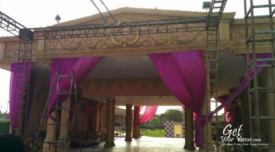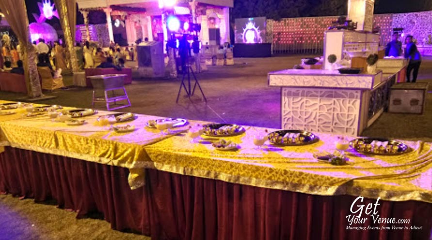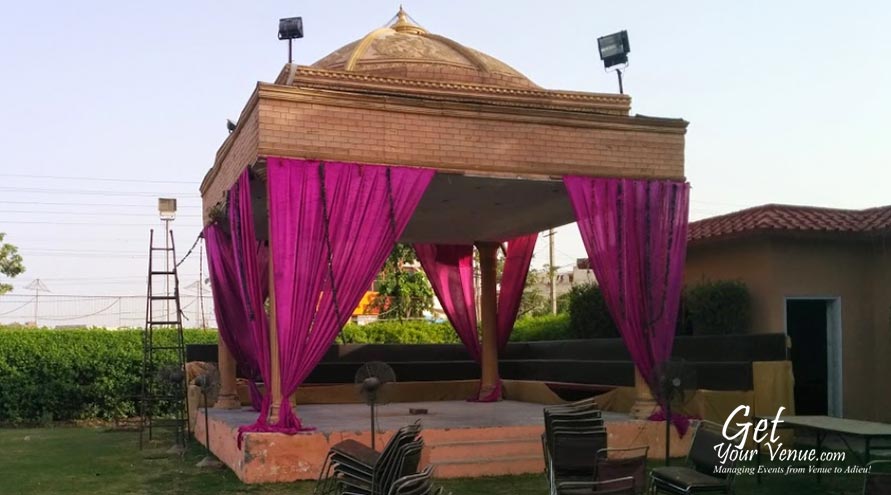 Utsav Garden is located on Sheetla Mata Road, is located at a modest distance from the city but offers you the serenity and calmness that is of trademark quality. Consisting of 2 farms, one of which is specially Rajasthani themed for specific thematic parties is something you can avail of if you wish to throw a differently styled bash. With a capacity of 1000 peolple for the basic farmhouse and that of 1500 people for the rajasthani themed, the venue offers a lot in terms of space and is covered with greenery throughout. It also boasts of adequate parking facility for more than 500 vehicles. To book this venue now, please fill the following form!!