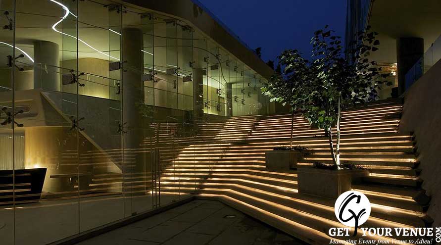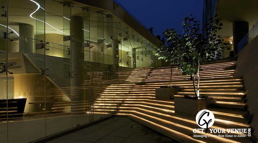 Tease lawns - It is located above the lobby level, Tease has a reflective water body and open-air seating. It is among the most premium open-air venues in Bangalore, offering a dramatic view of the International Tech Park and landscaped lawns on either side as it is spread in an area of 2500 sqm. Perfect location for corporate and social events, it is one of the best wedding lawns in Bangalore.
