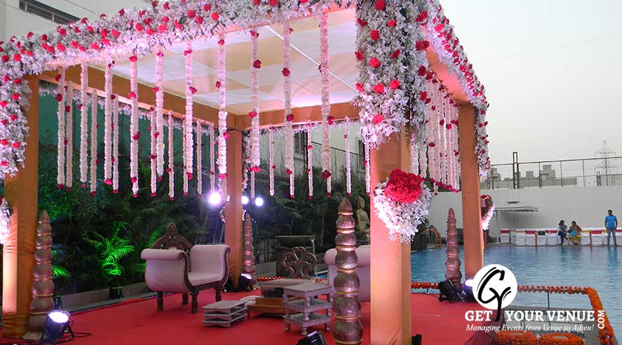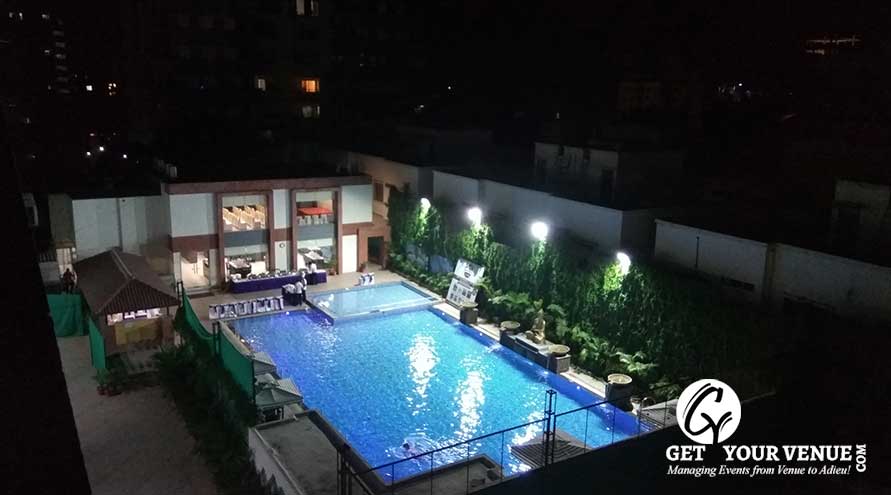 Poolside lawn - The place has a capacity of 250 people which is perfect for pre or post-wedding ceremonies and parties.