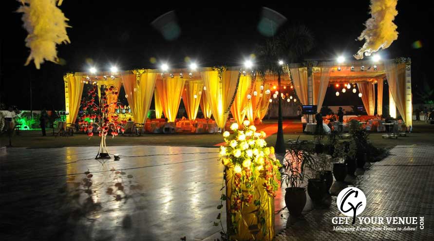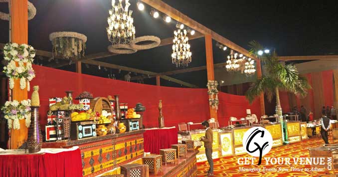 Lawn: Spread over 15,204 sq ft, this wedding venue is perfect to host your birthday parties and wedding functions. It can accommodate a host event for up to 1,200 guests.