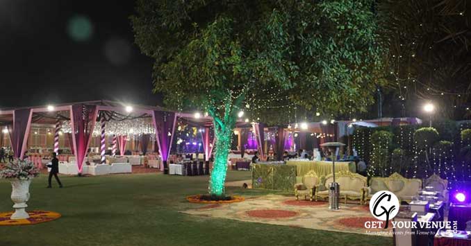 Hall+Lawn- This lush green farm has spacious lawn and hall that allows you to host your celebration with utmost perfection.