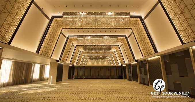 The Grand Stand 2: This fully air-conditioned banquet hall will accommodate 200 guests in the space area of 2,204 sq. ft.