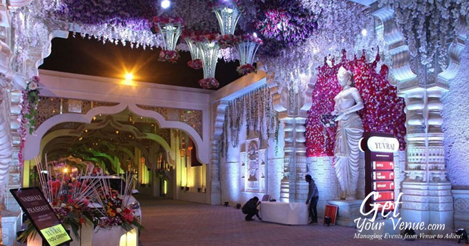 Yuvraj Lawn – It is attached with a fully air-conditioned hall and an enclosed mandap. Spread across 55,000 square feet of area, Yuvraj lawn is an ideal choice for you if you wish to enjoy the luxuries of both indoors and outdoors. The mandap can also be set up in a courtyard garden if you wish to take the pheras under the vast blue sky. This venue can accommodate 300 to 500 guests.