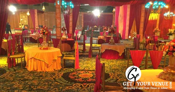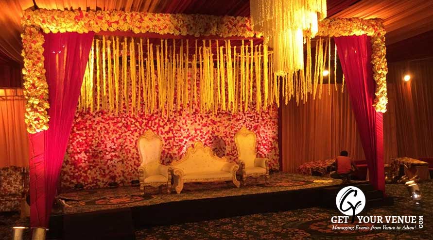 Vast expanse of verdant lawns adds subtle charm to your wedding venue. It ensures your esteemed guests having enough room for meet and greet without bumping into each other. Lovely lighting effect and floral décor make the space more elegant.